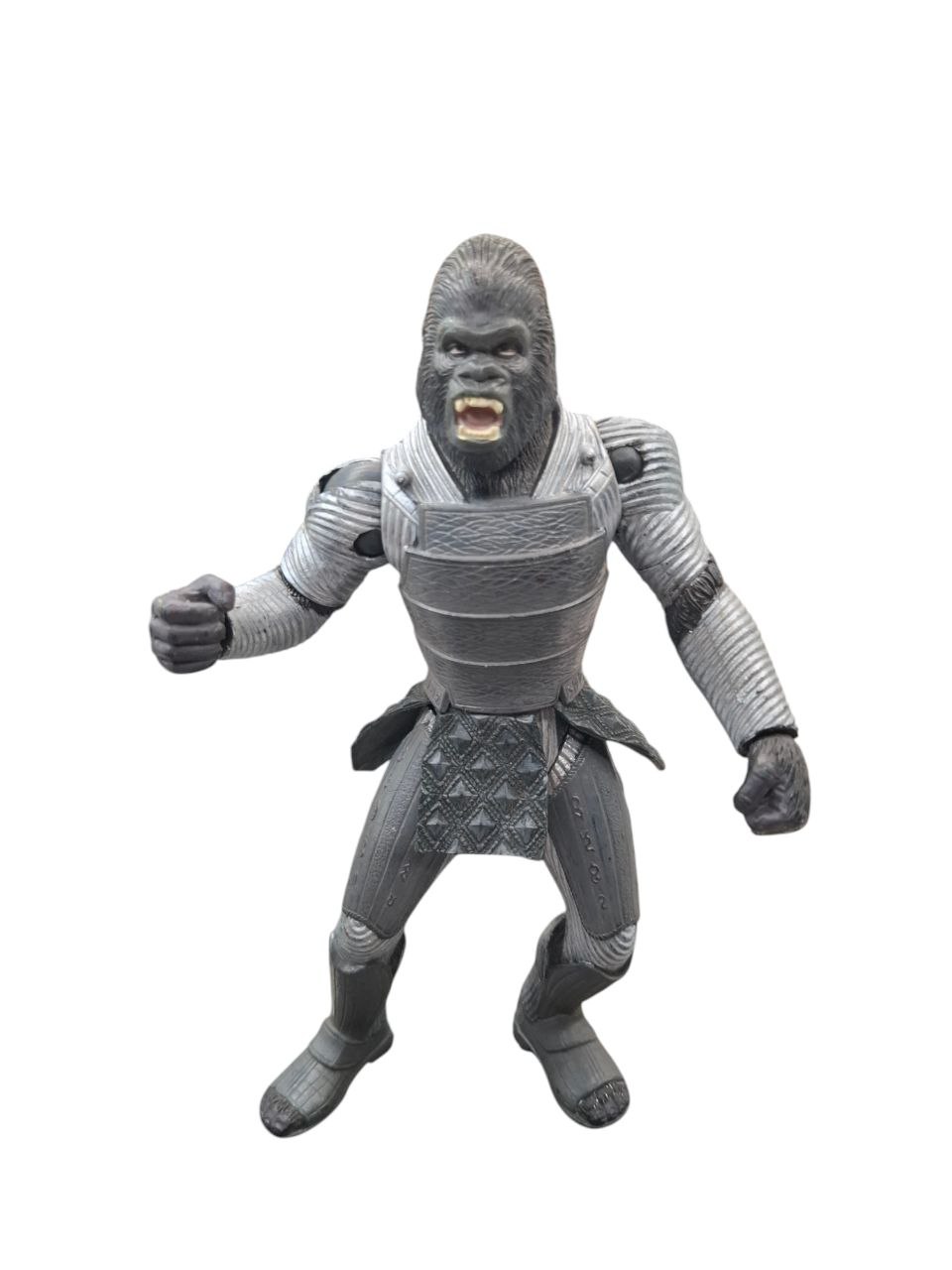 Esculpido Auténtico: La figura presenta un esculpido detallado del rostro de Attar, capturando su expresión feroz con la boca abierta, mostrando sus colmillos. El realismo en la textura del pelaje del gorila en la cabeza y los brazos es notable, contrastando con su armadura.