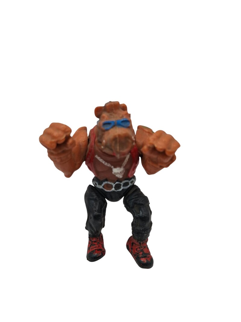 Regresa a las alcantarillas de la nostalgia con esta auténtica Figura Bebop Bootleg de los años 80s/90s! Para los coleccionistas de juguetes retro que valoran la historia detrás del merchandising de las Tortugas Ninja, esta figura es una pieza esencial. Bebop, el icónico jabalí mutante y leal compinche de Rocksteady y Shredder, es uno de los villanos más reconocibles de la serie animada Teenage Mutant Ninja Turtles (TMNT), y su versión bootleg tiene un encanto retro único e inconfundible.