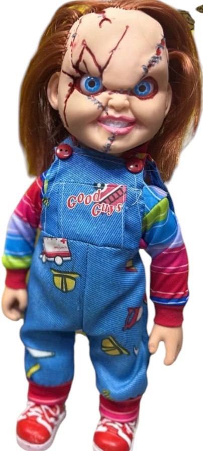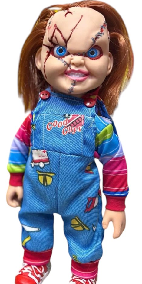 Esta versión de Chucky es la que muestra el daño acumulado de sus constantes regresos y enfrentamientos, con la cara desfigurada por costuras, cortes y quemaduras. Su diseño, que combina la inocencia infantil de un muñeco “Good Guys” con la maldad pura de un psicópata, es lo que lo ha convertido en un ícono inmortal del género de terror.