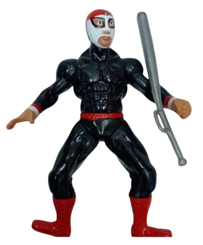 • Accesorios de Combate: La figura incluye un accesorio (en este caso, un objeto largo plateado que podría simbolizar un arma de artes marciales o un objeto contundente), un elemento común en las figuras de acción de luchadores, añadiendo un elemento de juego y dramatismo.