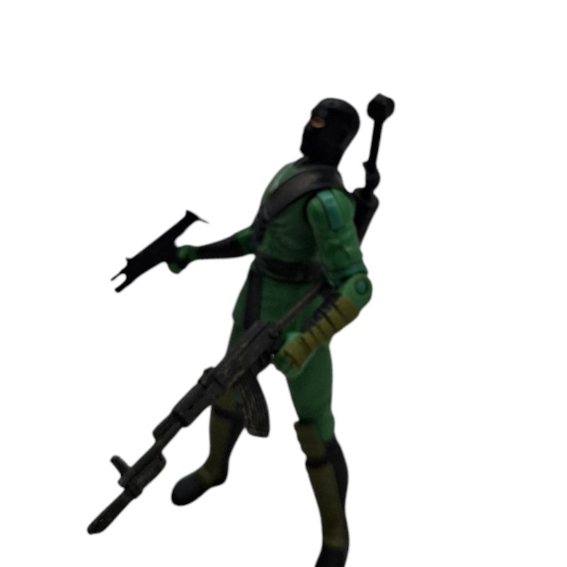 La estética de Cobra Ninja combina el misterio del arte marcial con el armamento futurista de Cobra. El inusual color verde brillante sugiere que esta figura podría ser una unidad especializada en entornos selváticos, una variante de camuflaje de un ninja más conocido (como Storm Shadow o Jinx), o un trooper de élite asignado a la vigilancia en bases ocultas. Esta rareza en el esquema de color la hace particularmente deseable para coleccionistas que buscan variantes únicas.