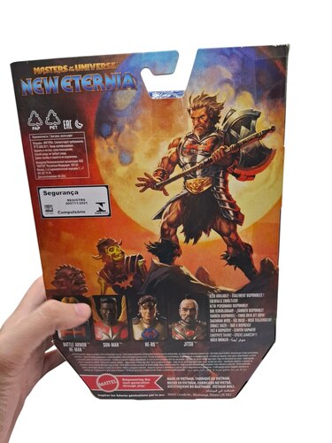 El rasgo más distintivo de esta Figura He-Man Battle Armor es su armadura pectoral. Fiel al diseño original de los años 80, esta armadura incluye el famoso gimmick de daño de batalla. En la versión Masterverse, esto se logra a menudo mediante una placa pectoral giratoria o piezas intercambiables que revelan tres niveles de daño progresivo (desde un “H” intacta hasta las tres rayas de batalla). Este detalle funcional no solo añade autenticidad a la figura, sino que también permite a los coleccionistas recrear el desarrollo de una pelea épica.
